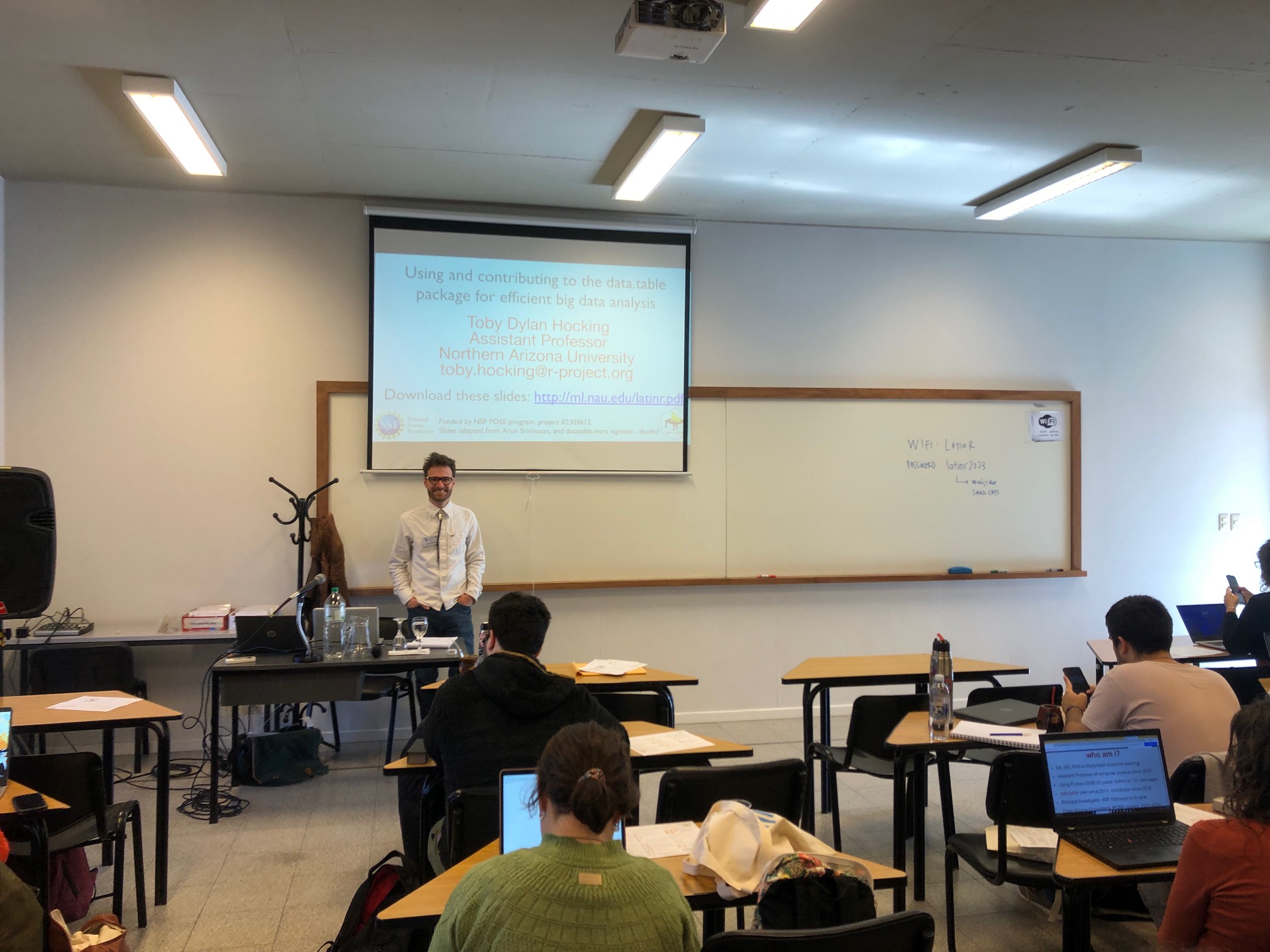 Last month, I (Toby) went to the LatinR conference in Montevideo, Uruguay. I had two goals: to teach about data.table in a tutorial, and to find people to work on translations.