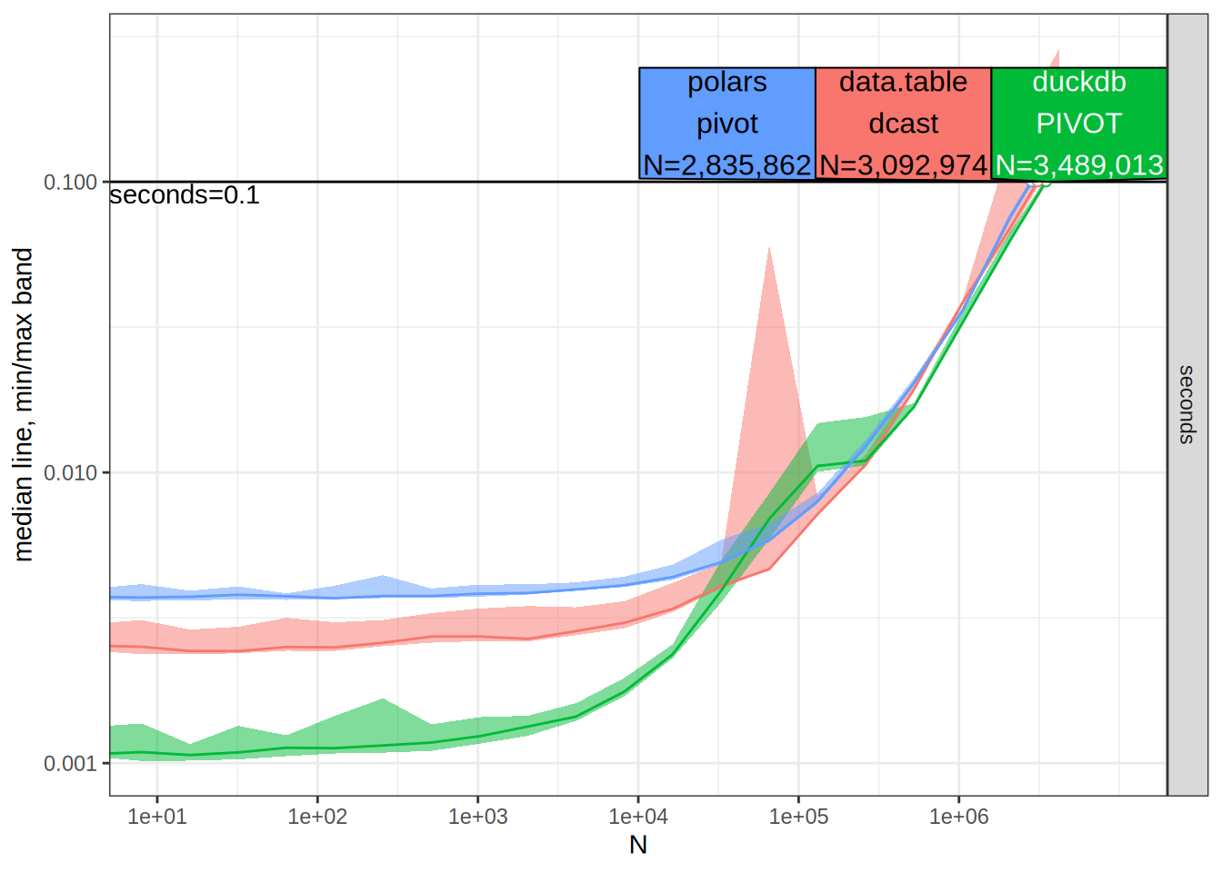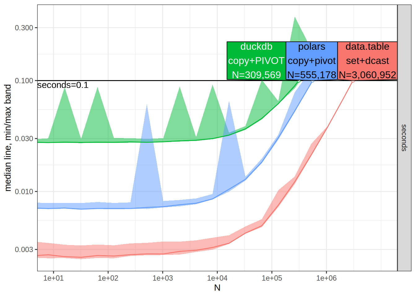 Next, we establish our performance test. Here, we will create a data.table object and then compute the range by group. We vary the size of the object by varying values of N across tests.